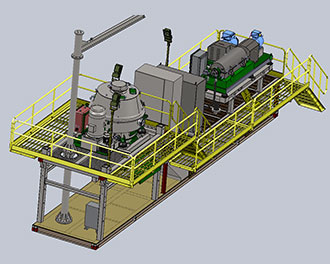 國際運(yùn)輸時(shí),可以拆卸離心機(jī),鉆屑甩干機(jī)和防爆變頻控制柜后滿足放入集裝箱的運(yùn)輸要求。