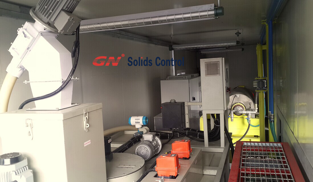 GNLW553臥螺式大處理離心機用來做為主要脫水設備,對泥漿中的超細顆粒進行絮凝后分離。利用兩臺螺桿泵分別對離心機輸送泥漿和絮凝藥品,兩者在進漿管中進行混合絮凝。離心機分離完的泥餅可以進行填埋或者其他無害化處理。干凈的水則被收集起來留作他用。